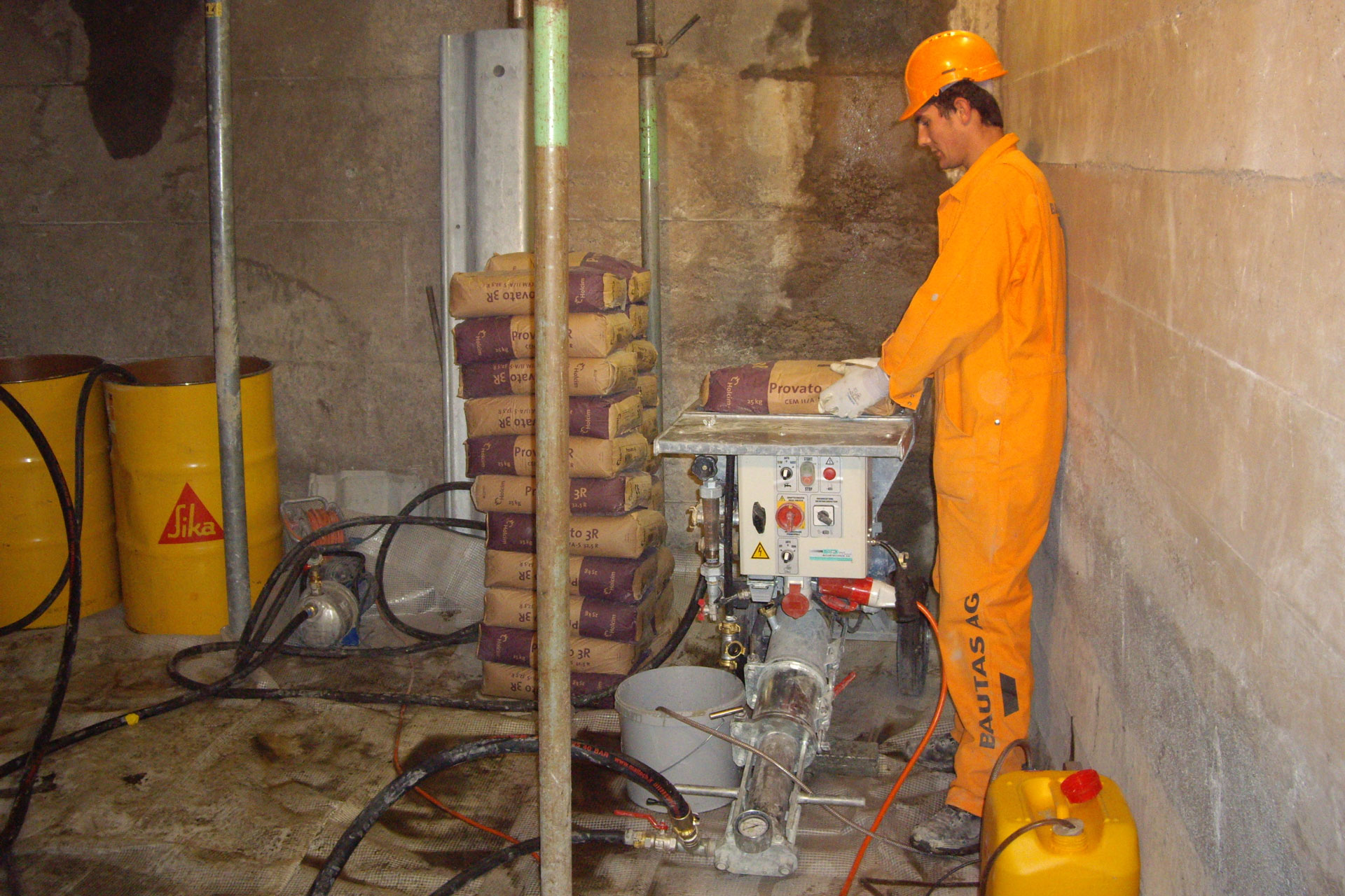 Ausführung von Injektionen bei neuen und bestehenden Bauwerken. Kraftschlüssige Injektionen bei statischen Beanspruchungen. Bei Neubauten werden die vorverlegten Injektionsschläuche nach der Aushärtung des Betons mit leistungsfähigen Injektionspumpen ausinjiziert. Stoppen und abdichten bei eindringendem Wasser.
