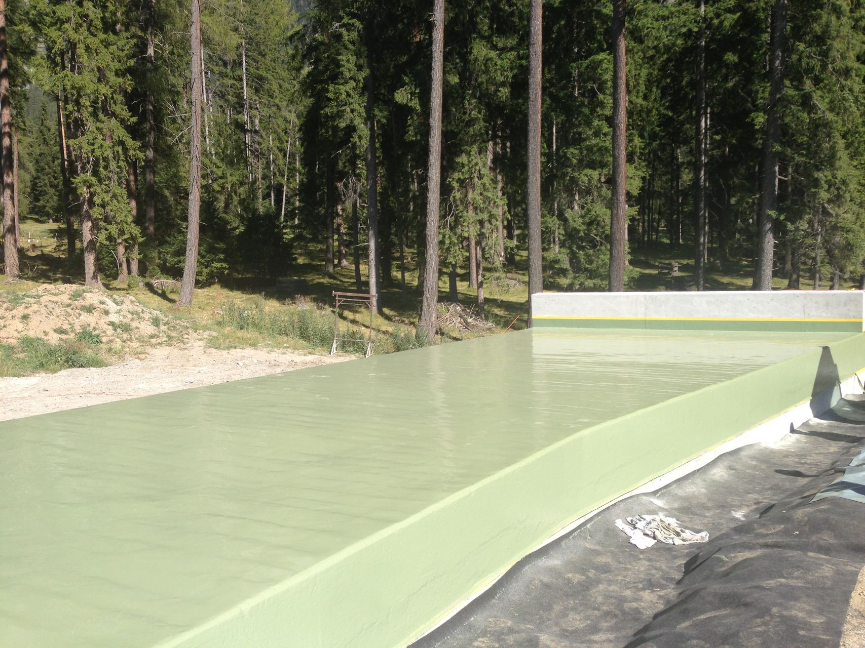 Abdichtung der Unterführungen mit PUR- Flüssigkunststoff (System Progaflex) inkl. Brückensiegel. UV- Schutz bei den sichtbaren, herausragenden Bauteilen. Einbau von Gummigranulatbahnen als Schutz der Abdichtung.